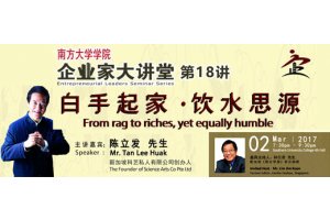 Southern University College is launching the long-waited Entrepreneurial Leaders Seminar Series in 2014. In the first series, we will invite well-known entrepreneurs to share their success, entrepreneurship and management philosophy for the public community and the students. Entrepreneurs are freely relaxing and in-depth review of inspiration to share their entrepreneurial experience, management culture and life experience. Throughout the discussion and dialogue, it is important to achieve effective multi-faceted exchanges and communication between entrepreneurs and participants.