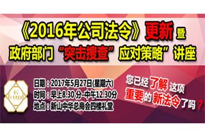 《2016年公司法令》更新暨政府部门“突击搜查”应对策略”讲座 5月27日(星期六)