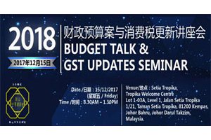 《2018财政预算案及消费税更新》讲座会 (12月15日 星期五)