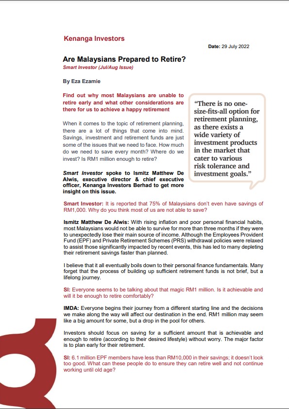 Smart Investor: Are Malaysians Prepared to Retire?